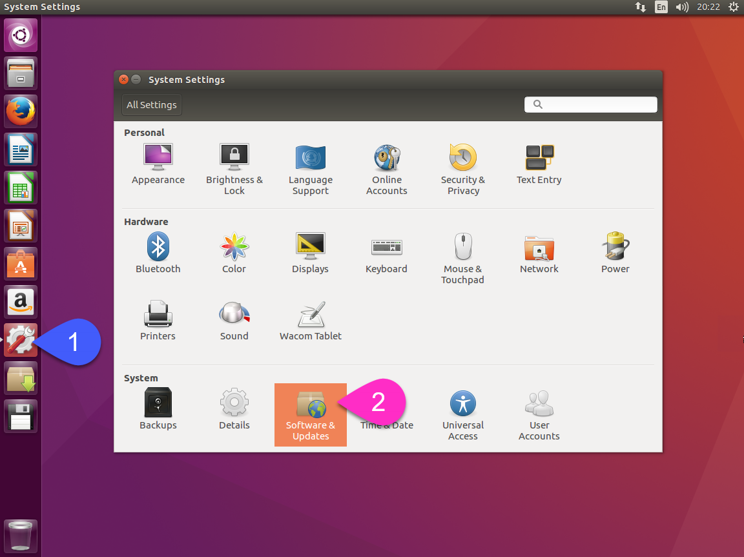โดยคลิกไปที่เมนู System Settings ตามด้วย คลิกไปที่ Software & Updates ดังแสดง
