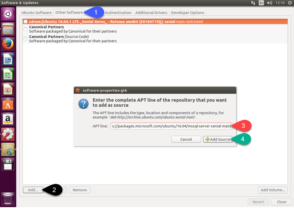 จากนั้นกดปุ่ม Add จะปรากฏหน้าต่าง Software-Properties-Gtk ขึ้นมา