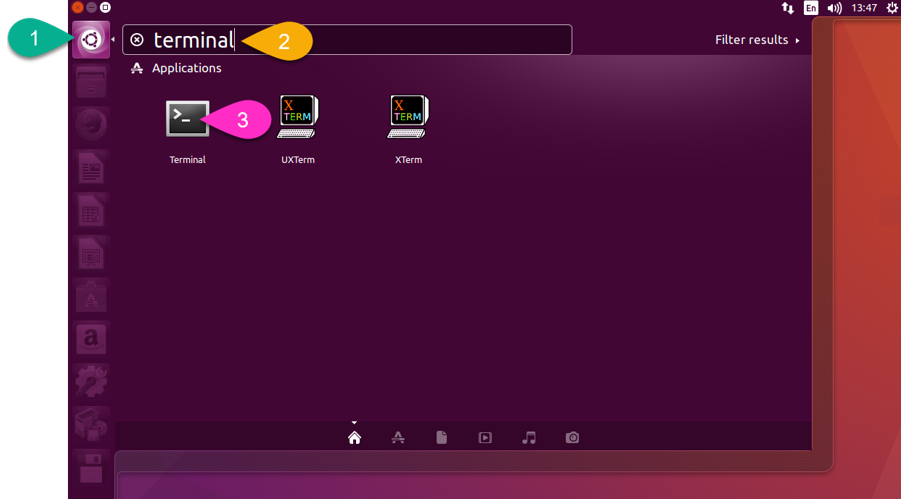 แล้วค้นหาโปรแกรม Terminal เพื่อใช้เข้าถึง Shell ของ Linux