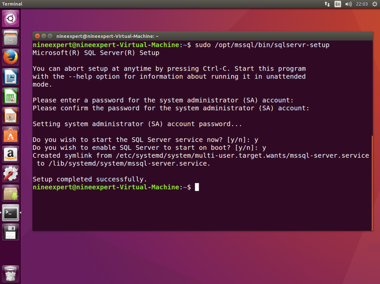 Microsoft SQL Server ก็จะติดตั้งลงบน Ubuntu โดยสมบูรณ์