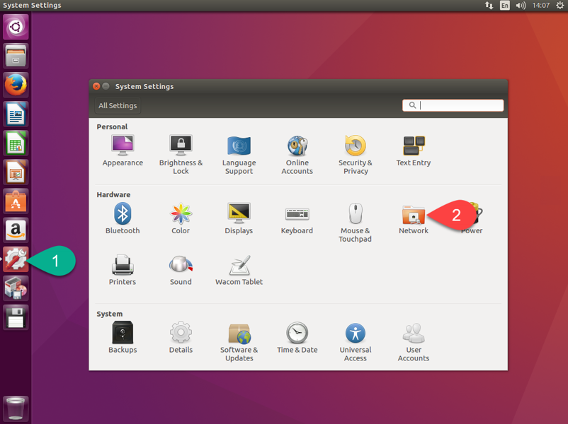 ก่อนอื่นให้ทำการตรวจสอบ IP Address ของ Linux เครื่องนี้เสียก่อนโดยคลิกไปที่ System Settings บน Desktop แล้วคลิกไปที่ Network ดังแสดง