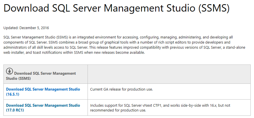 แต่ขณะที่ผู้เขียนเขียนบทความนี้ Microsoft SQL Server Management Studio (SSMS) ซึ่งเป็นเครื่องมือในการจัดการกับ Microsoft SQL Server