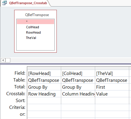 แต่ถ้าเราอยากแปลงรูปแบบดังกล่าวใน Microsoft ACCESS เราสามารถทำได้ด้วยการสร้าง Query ให้มี 3 คอลัมน์ดังนี้