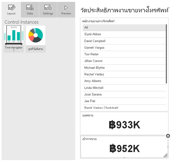 สำหรับ Control Instance ชื่อ “เป้าการขาย” จะใช้ข้อมูลจากตาราง SalesTarget